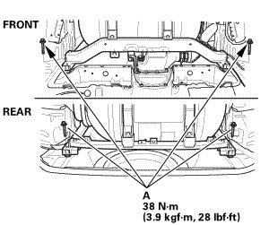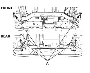 1. Remove the center seat belt buckle bolt (A) at the floor.