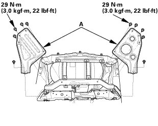 1. Install the rear floor undercover (A).