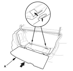 1. Remove the rear shelf gussets (A) in the trunk.