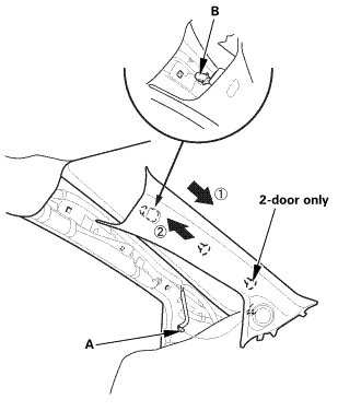 4. Lightly push the A-pillar trim (B) into place, then install the trim.