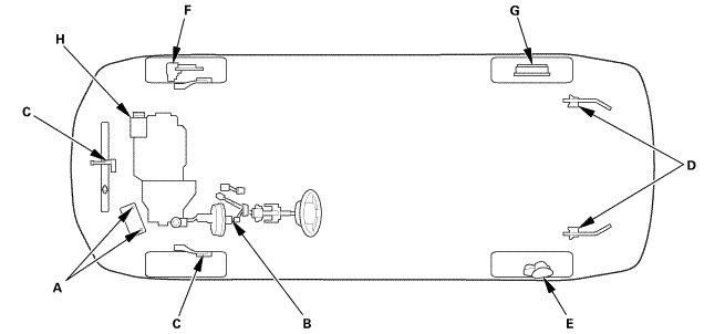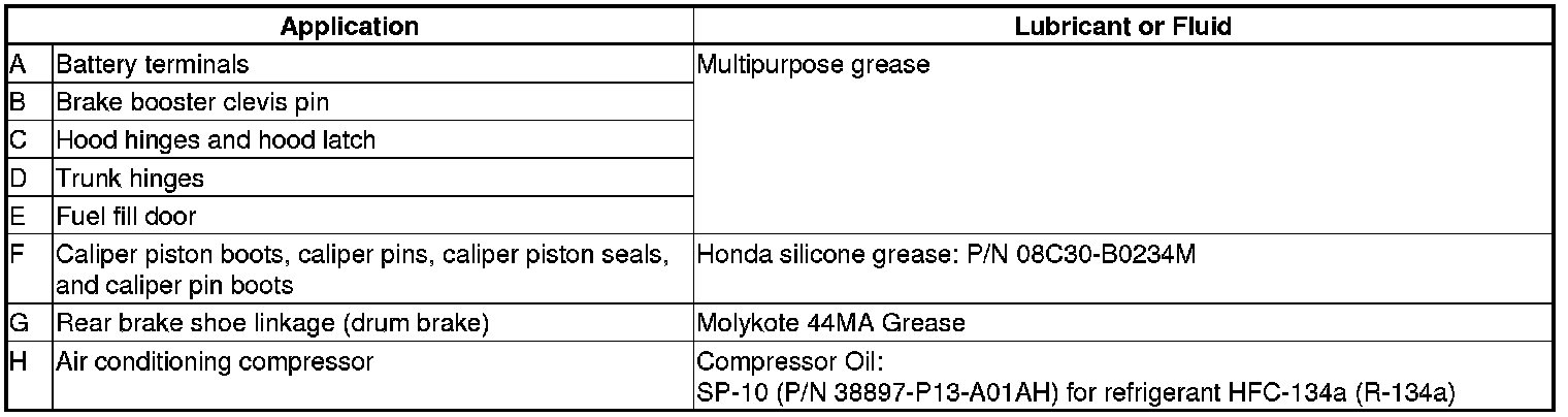 * Lubricate the following areas using the recommended lubricants and fluids.