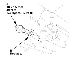 2. Reinstall the drain plug using a new sealing washer (B).