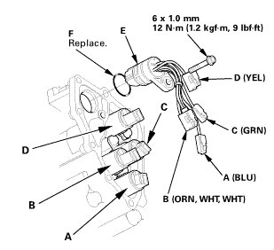 1. Install the shift solenoid wire harness (E) using a new O-ring (F).