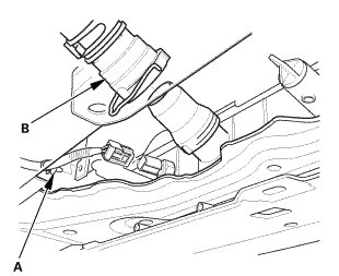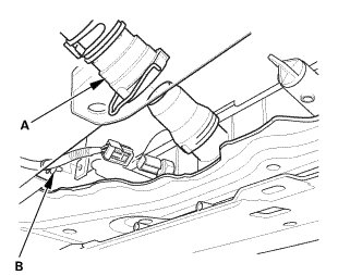 8. Connect the lower radiator hose (B).