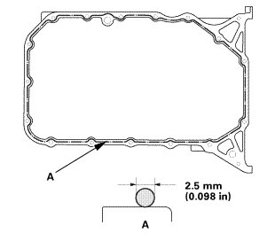 * Apply a 2.5 mm (0.098 in) diameter bead of liquid gasket along the broken line (A).