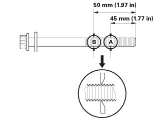 5. Measure the diameter of each cylinder head bolt at point A and point B.