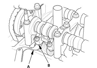 1. Install the VTC oil control solenoid valve (A) with a new O-ring (B).