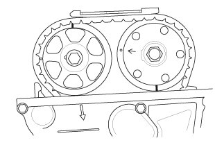 8. Rotate the crankshaft 180 ° clockwise (camshaft pulley turns 90 °).
