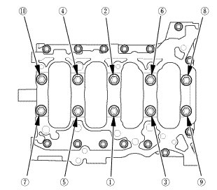 5. Apply new engine oil to the threads of the bearing cap bolts. Torque the bearing cap bolts in sequence, to 30 Nm (3.1 kgfm, 22 lbfft).