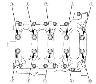 7. Torque the 8 mm bolts in sequence to 22 Nm (2.2 kgfm, 16 lbfft).