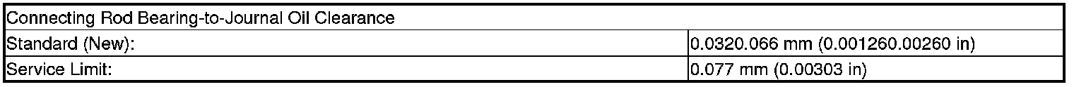 1. Each connecting rod has a tolerance range from 0 to 0.024 mm (0.00094 in), in 0.006 mm (0.00024 in) increments, depending on the size of its big end bore. It's then stamped with a number or bar (1, 2, 3, or 4/I, II, III, or IIII) indicating the range. You may find any combination of numbers and bars in any engine. (Half the number or bar is stamped on the rod cap, the other half is on the connecting rod.) If you cannot read the code because of an accumulation of oil and varnish, do not scrub it with a wire brush or scraper. Clean it only with solvent or detergent.