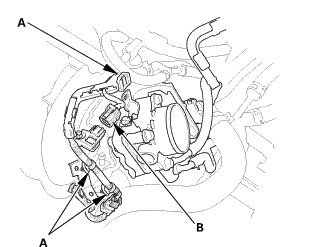 1. Connect the EVAP canister hose (A) and the brake booster vacuum hose (B).
