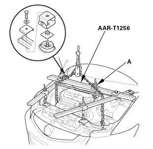 NOTE: Reinstall the mounting bolts/support nuts in the sequence given in the following steps. Failure to follow this sequence may cause excessive noise and vibration, and reduce engine mount life.