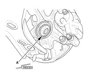 1. Apply about 5 g (0.18 oz) of molybdenum grease to the contact area (A) of the outboard joint and the front wheel bearing.