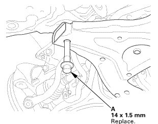 1. Loosely install the new front subframe mounting bolts (A) on both sides.