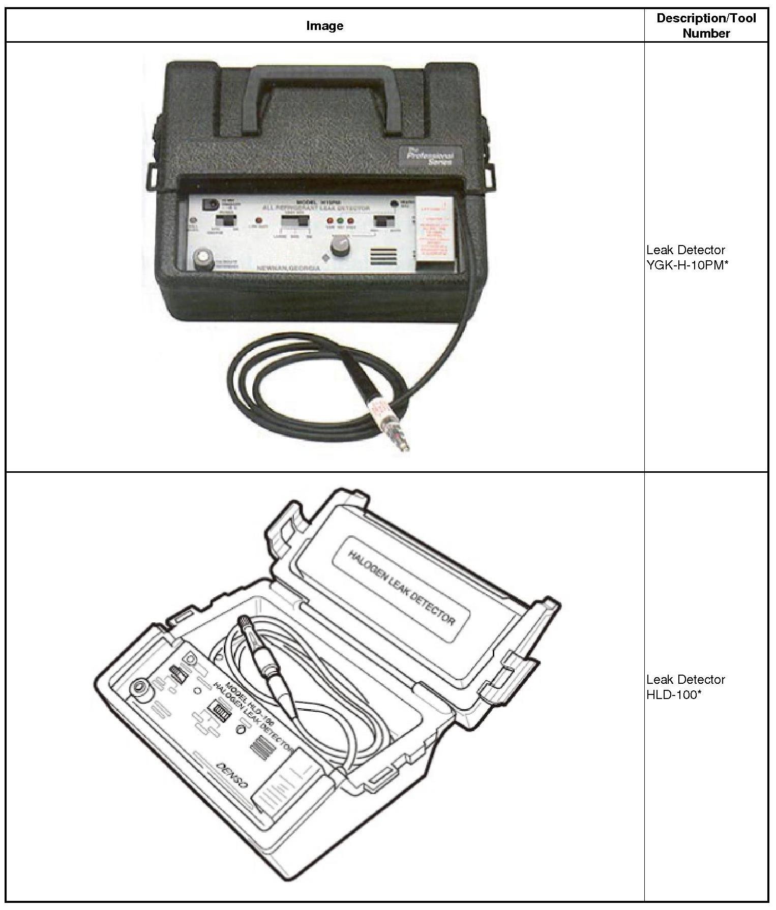 * Halogen leak detectors are sensitive to chemicals: windshield washing solutions, solvents/cleaners, and some vehicle adhesives. Keep these chemicals out of the area when doing leak detection.