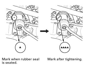 * Tighten the filter by turning it clockwise three numbers or marks from the one you noted. For example, if mark V is at the bottom when the seal is lightly seated, tighten the filter until the mark VVVV comes around to the bottom.