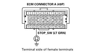 -NO- Repair an open in the STOP_SW wire between the ECM (A13) and the brake pedal position switch.