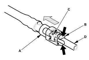 * Be careful not to damage the line (D) or other parts.