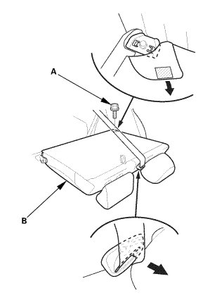 2. Extend the center seat belt (A), then remove the left rear seat-back (B).