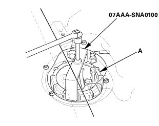 1. Using the special tool, loosen the locknut (A).