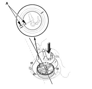 2. Align the marks (A) on the fuel tank and fuel tank unit, then insert the fuel tank unit into the fuel tank until.