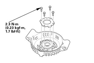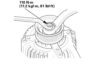 1. Install the pulley on the rotor and install the locknut, then torque the locknut to 110 Nm (11.2 kgfm, 81 lbfft).