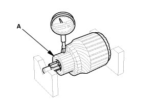 4. Measure the commutator (A) runout: