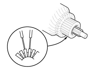 6. Use an ohmmeter to check for continuity between the segments of the commutator. If there is an open circuit between any of the segments, replace the armature.