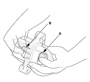 1. Check for continuity between the (+) brushes (A) and the (-) brushes (B). If there is continuity, replace the brush holder assembly.
