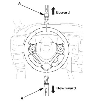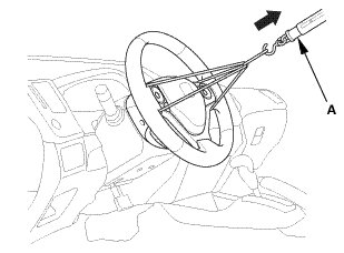 2. Attach a commercially available spring scale (A) to the highest point of the steering wheel, and tilt the steering column to the lowest position.