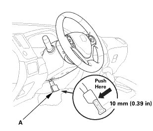 1. Move the lock lever (A) from the loosened position to the locked position three to five times, then release the lock lever. Adjust the steering column to the center tilt position and also to the full telescopic out position, and hold the steering wheel.