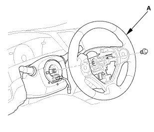 6. Install the steering wheel bolt (A), and tighten it to the specified torque.