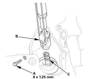 * Pinion shaft with center guide: Install the steering joint by aligning the center guide (C).