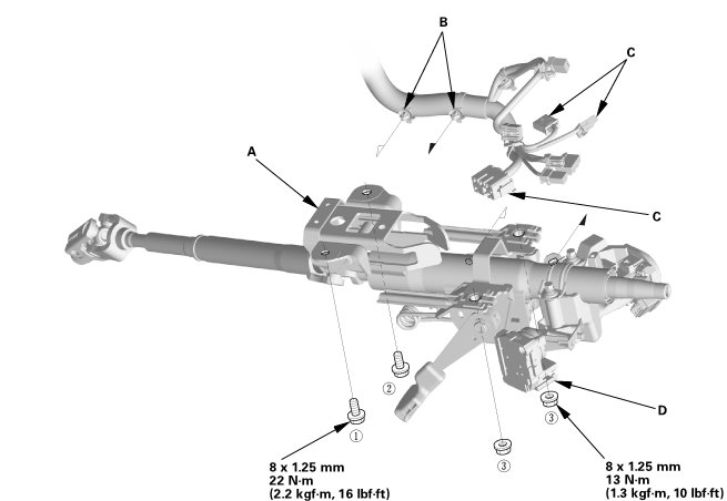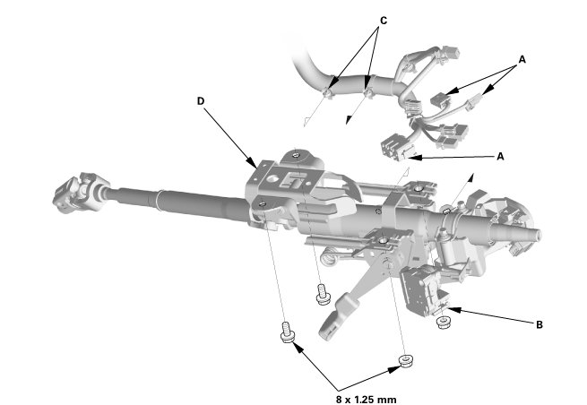 * Check the coat plates (E) for distortion or breakage. If there is distortion or breakage, replace the steering column as an assembly.