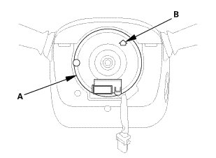 4. Position the steering wheel hub (A) so that it engages the pin (B) of the cable reel.