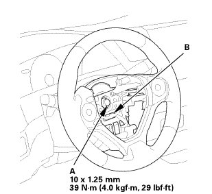 NOTE: Make sure the clearance (B) between the steering wheel and horn pad is the specified value.