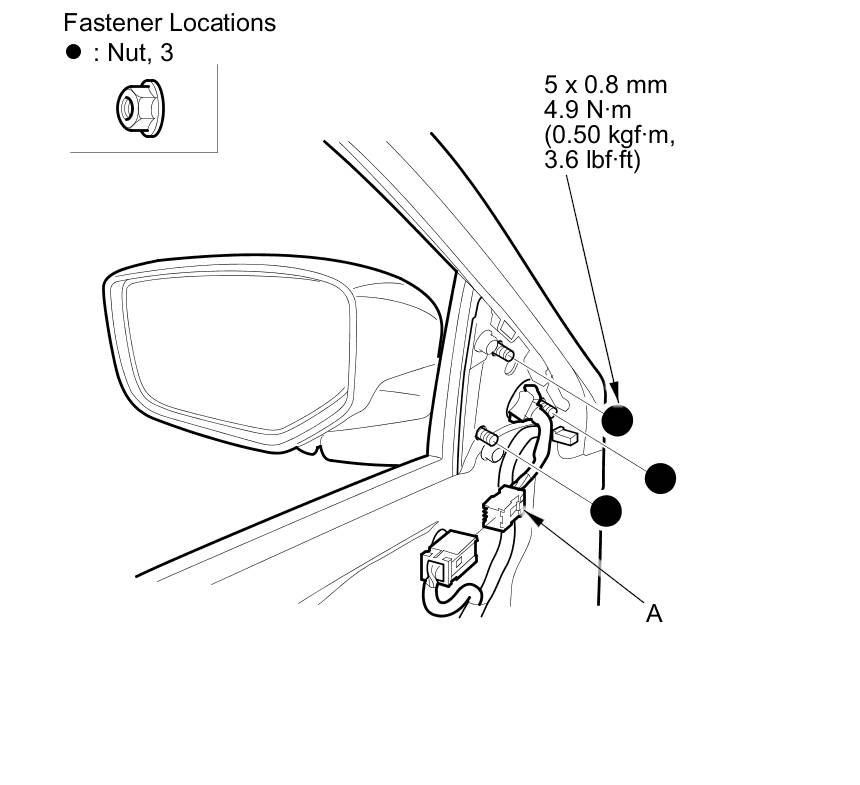 2. Disconnect the power mirror connector (A).