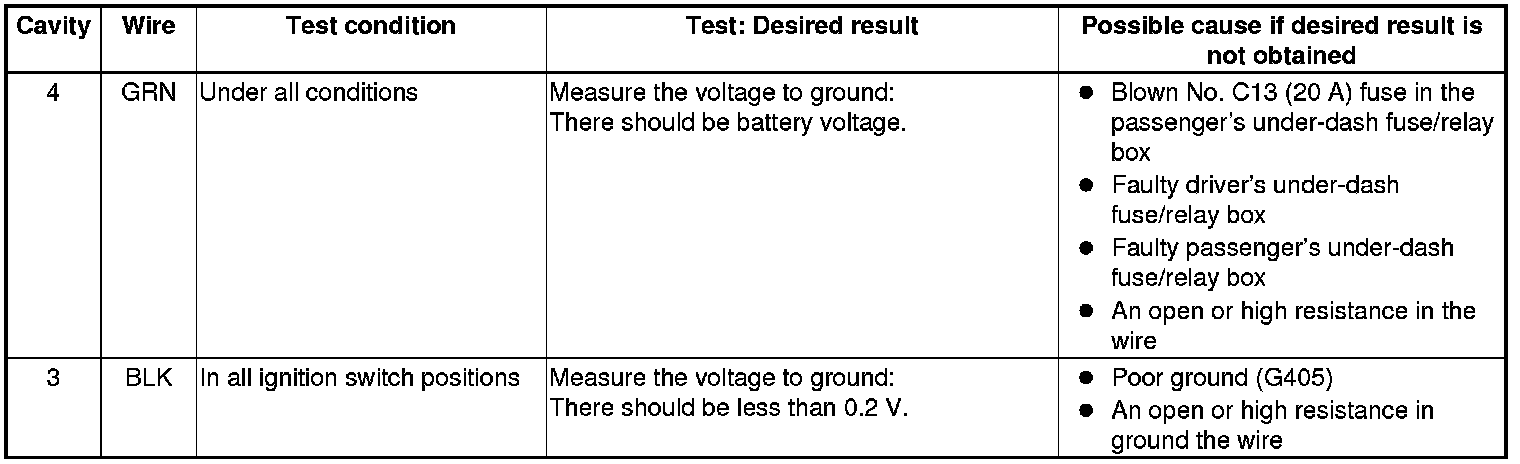 NOTE: Before testing, troubleshoot the multiplex integrated control unit first, using B-CAN System Diagnosis Test Mode A.