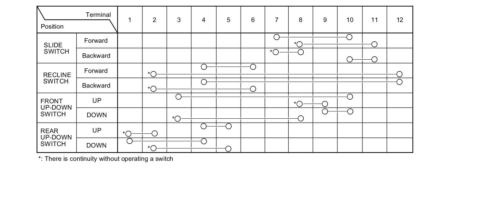 5. Check for continuity between the terminals in each switch position according to the table.