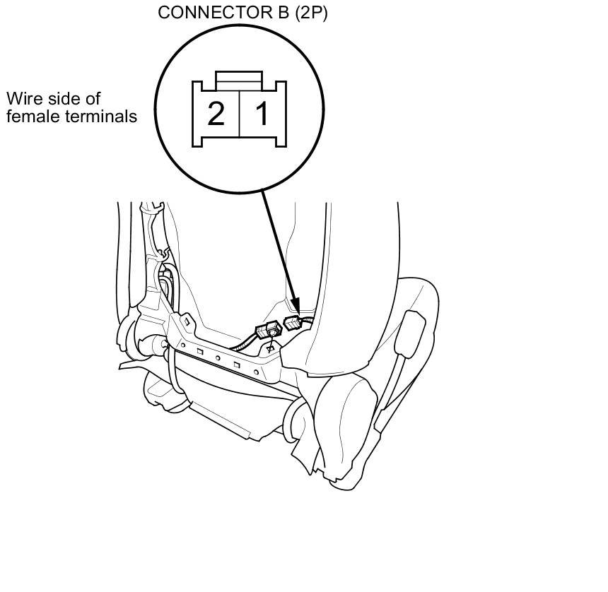 4. Check for continuity between seat heater connector B (2P) terminals No. 1 and No. 2. There should be continuity.