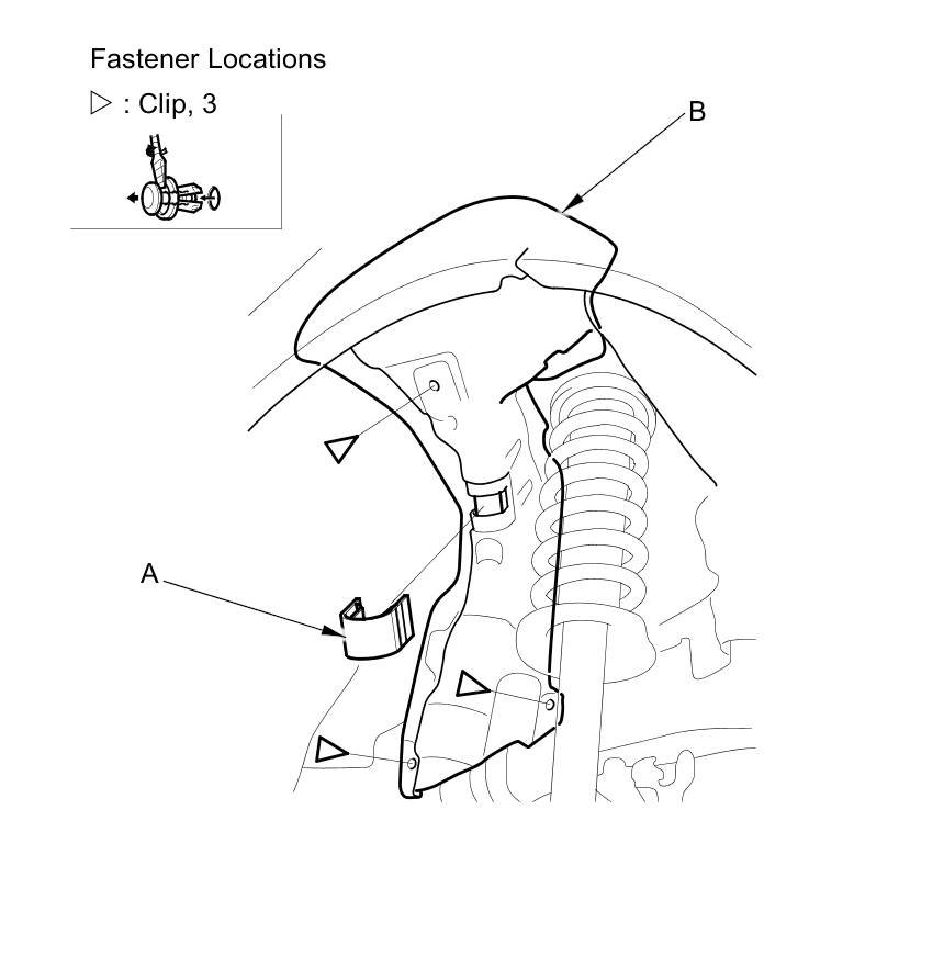 - Make sure the fuel pipe protector clip (A) is set to the fuel pipe (B) securely.