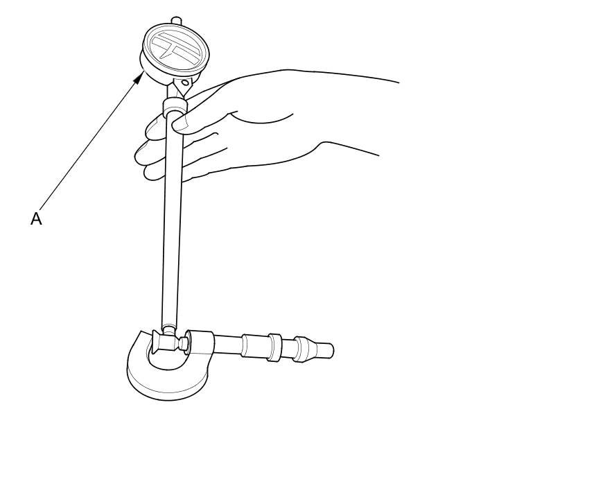 2. Zero the dial indicator (A) to the piston pin diameter.