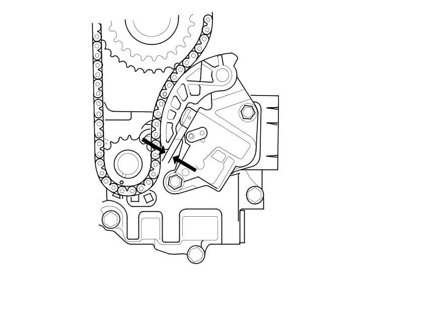 13. Check the oil passage on the oil pump chain auto-tensioner for clogs. If the auto-tensioner is clogged, replace it.