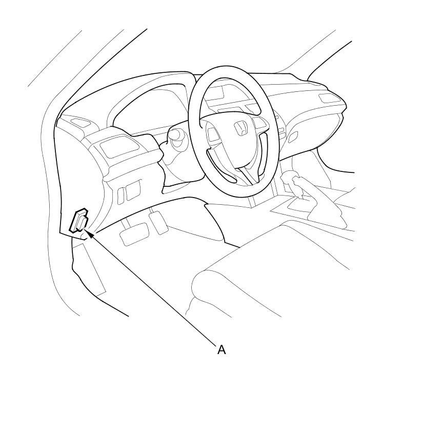 1. With the ignition switch in LOCK (0), connect the HDS to the data link connector (DLC) (A) located under the driver's side of the dashboard.