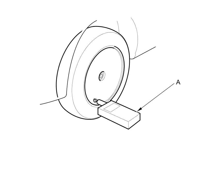 6. Hold the TPMS tool (A) near the valve stem of one wheel, and memorize the tire pressure sensor ID by following the screen prompts on the HDS.