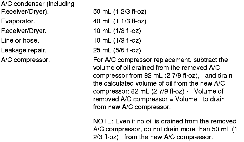 Too little oil damages the A/C compressor; too much oil reduces the cooling capacity of the system, and can produce high vent temperatures.