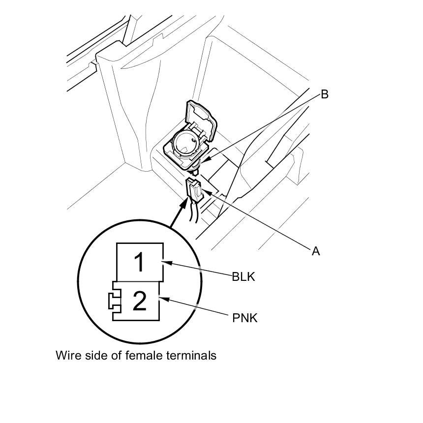 - An open or high resistance in the wire between console accessory power socket relay terminal No. 1 and console accessory power socket 2P connector terminal No. 2.