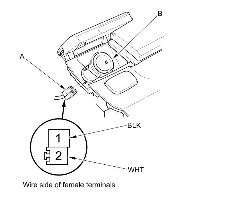 2. Disconnect the 2P connector (A) from the front accessory power socket (B).