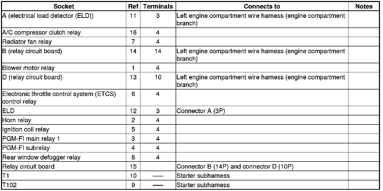 Fuse/Relay Box Connector Locations